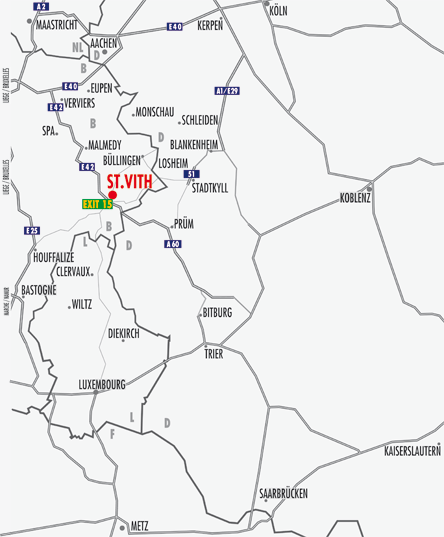 From Aachen, Trier, Lüttich and Maastricht you can reach us by car in